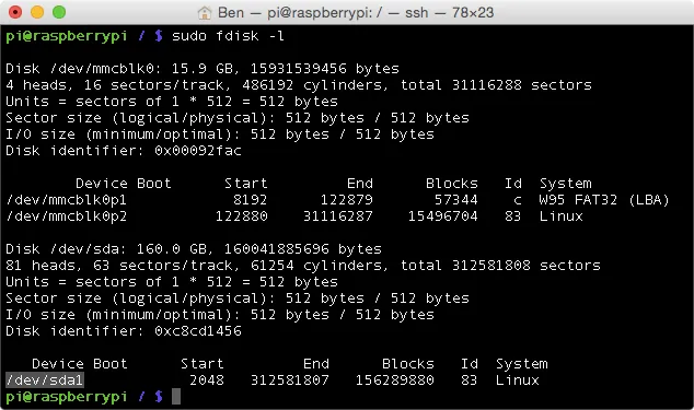 /dev/sda1).sudo fdisk -l